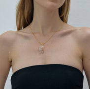 This collection predominantly uses translucent materials, such as quartz crystal and recycled clear plastic, shaped to mimic the rippling motion of water and embedded with gemstones that symbolize the shimmering reflections on the water’s surface. Additionally, the collection features transparent eye-shaped symbols crafted from silver, serving as a reminder that even the organ of sight can project illusions onto us.